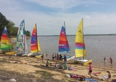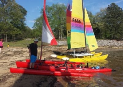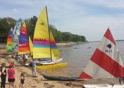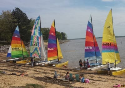 There are many brands and styles of multihull sailboats at Delta Sailing Association. These exciting “beachcats” are designed to be fast and exciting compared to traditional dinghy style sailboats.